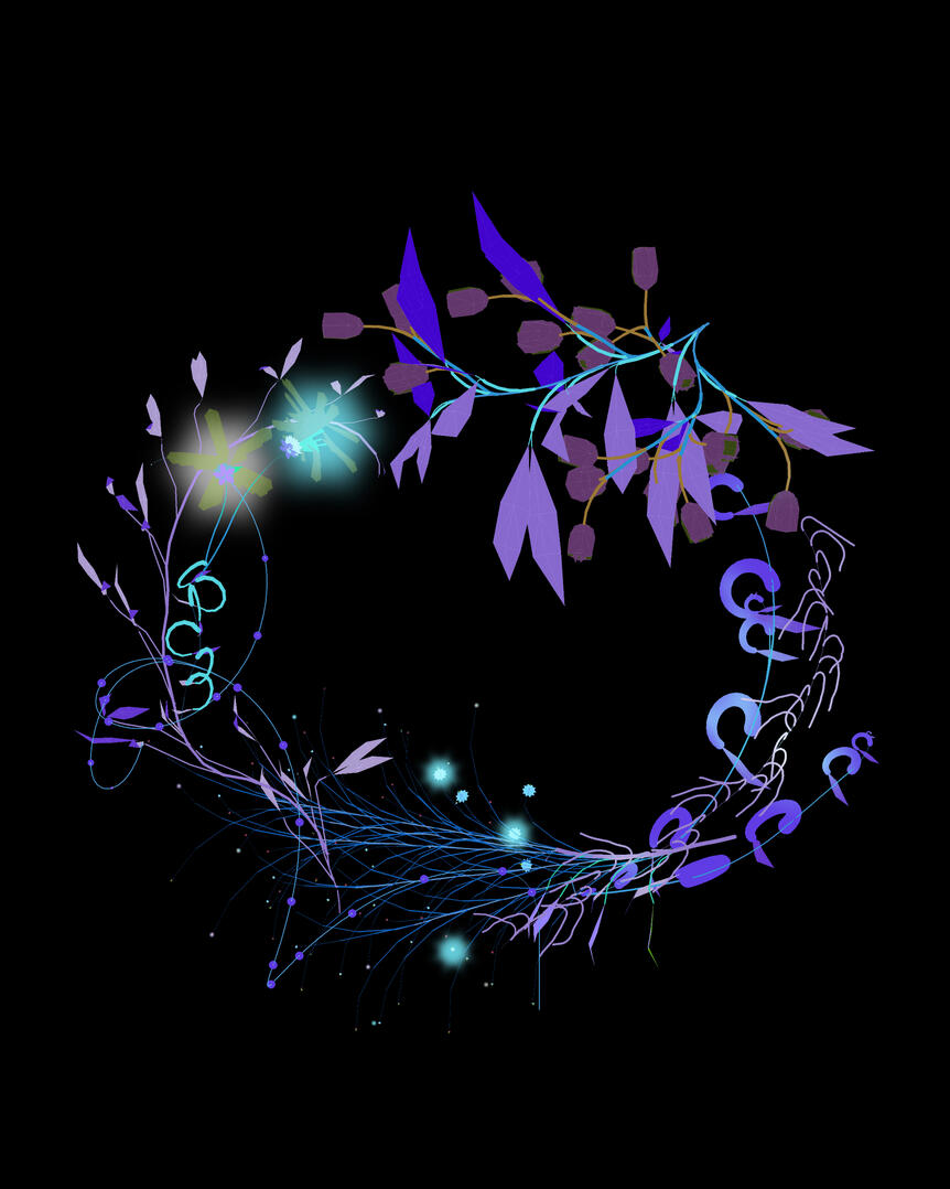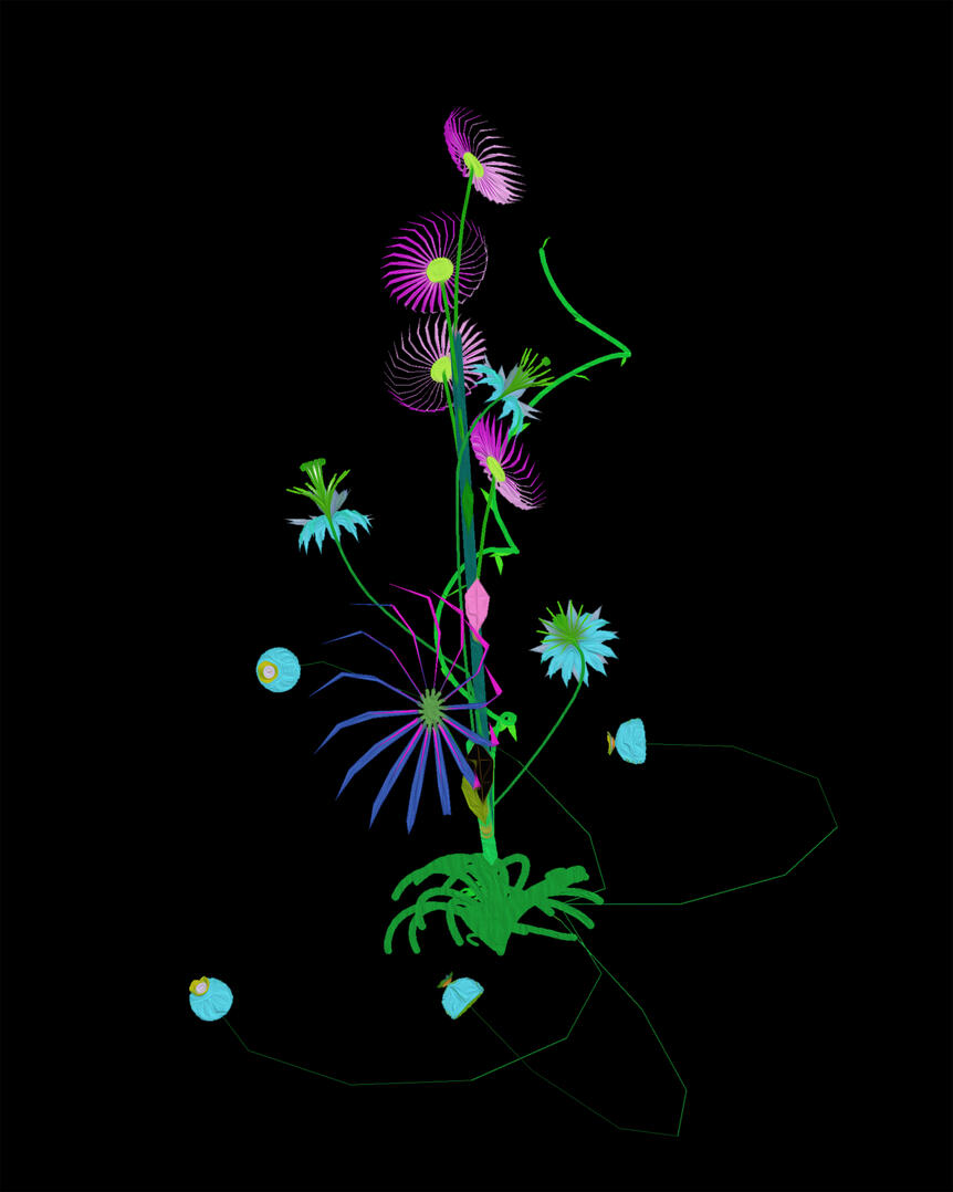i began playing with PlantStudio (1998), a "Botanical Illustration Software is a tool for creating 3D plant models and 2D illustrations" in 2017. i've been creating my own plants with the program since then and now have a digital garden unique to my tastes and experiments. i use the plants i breed to create "aura portraits," rendering a momentary energy in the form of a digital floral arrangement.if you'd like to try creating your own garden of digital plants, click here.